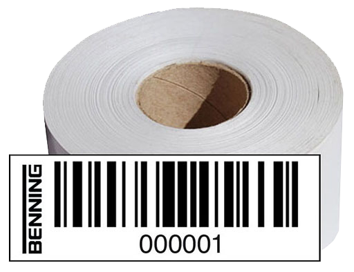 • Goed hechtende PVC-barcode etiketten met barcode en doorlopende nummering (1000 stuks op rol)